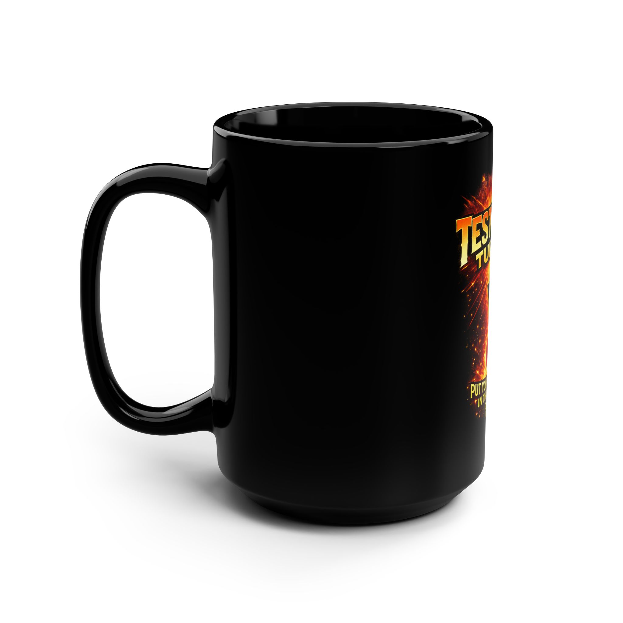 These black mugs come in one size – 15oz (0.44l) – plenty for morning caffeine boosts and hot cups of tea on a rainy day. They’re easy to grip and feel sturdy thanks to the C-shaped handle. Add more personality by decorating them with your original designs. They’ll be printed on the black ceramic material in picture-perfect quality with a glossy finish.